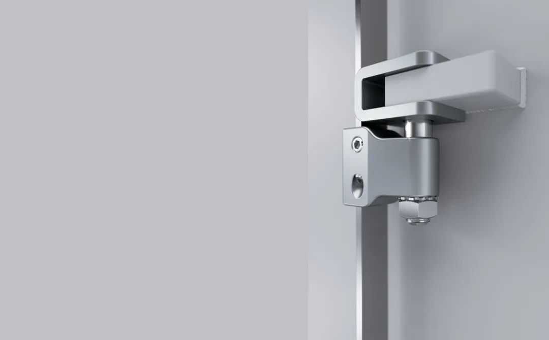 防压装置可以每10厘米放置一个,这确保了门被牢牢锁住,从而实现内部压力不会外泄。为了确保门在水平方向和垂直方向锁闭,锁闭点可以水平放置;通过90°的角度调节,在拐角上也可以安装,以确保门板的3个框受到的压力一致。